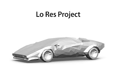 Il progetto Low Res di Koolhaas si basa sulla semplice idea di rendere alcuni oggetti in 2D attraverso l'uso di semplici zone poligonali per poi riportarli in 3D lasciando li stessi poligoni. Il progetto ha visto la progettazione e la realizzazione di diversi oggetti, ma questa Lamborghini è decisamente fuori dal comune.